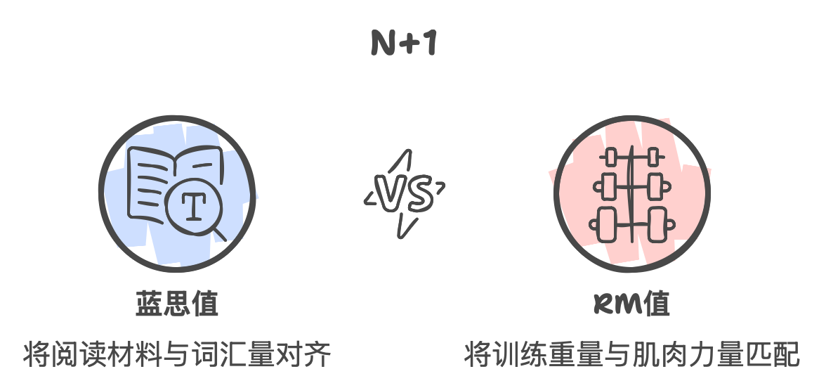 学英语和健身中都隐含一种“难度分级”的方法。把当前自身能够做到的程度再加一点点难度,作为目标(N+1,踮踮脚能够到)。