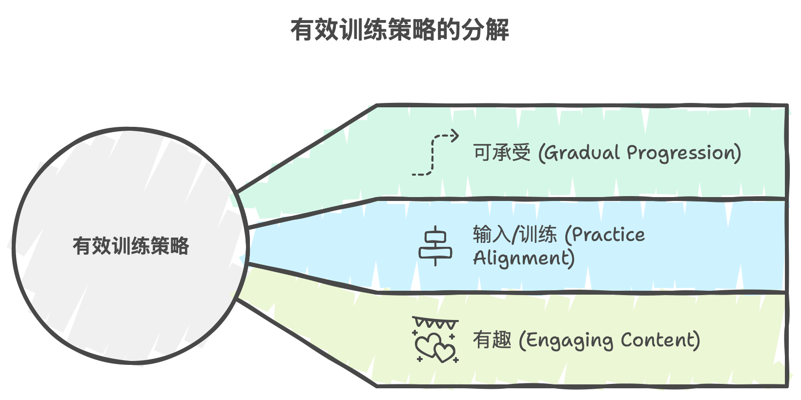 比如学英语中的“做大量有趣的可理解输入”,对应到健身上可以叫“做大量有趣的可承受训练”: